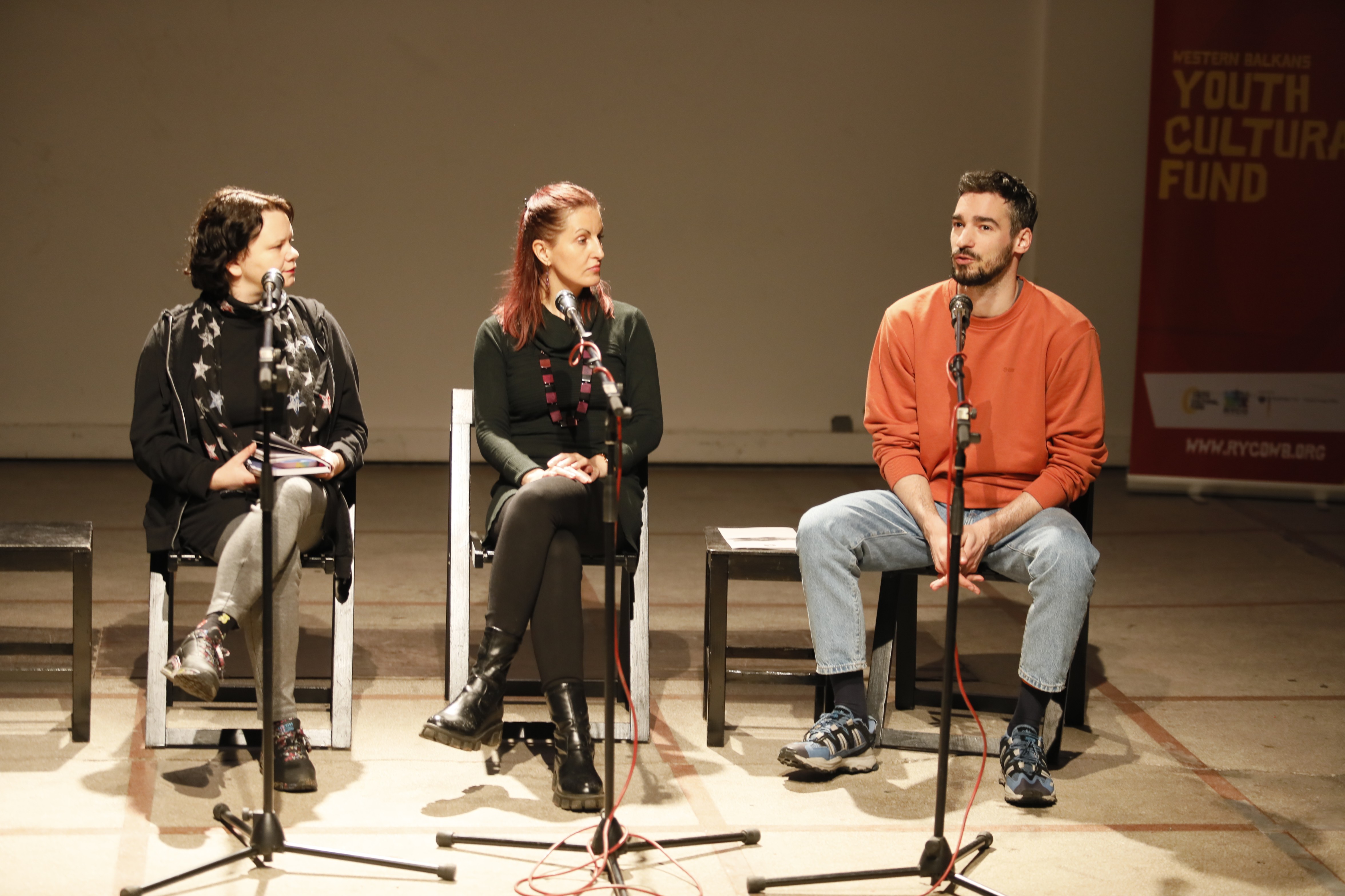The central program opened with a panel discussion under the theme “Culture as community and resistance”, bringing together Đorđe Živadinović Grgur (KROKODIL), Jelena Balević (If the Girls Are United), and Dunja Jeremić (Ruke su mostovi).